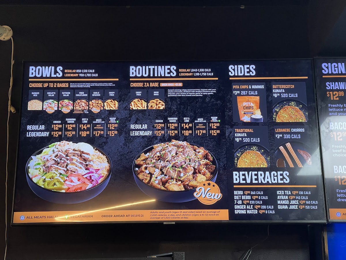 Shelby's Legendary Shawarma - White Oaks Menu